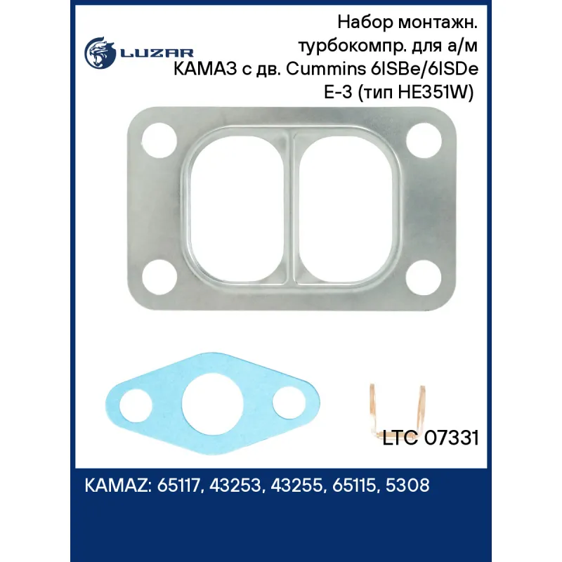 Набор монтажн. турбокомпр. для а/м КАМАЗ c дв. Cummins 6ISBe/6ISDe E-3 (тип HE351W) (прокл. 4 шт.) Характеристики: Артикул: LTC 07331 OEM номера: 4955908, 4043980, 4033409, 4043982, 4047757, PP99047, 2837188, 4047758, 4956077, 2839319 Количество на автомобиль: 1 Материал: Сталь, медь, безасбестовый картон Сопутствующий товар: Турбокомпрессор: LAT 0733, LAT 0734 Сопутствующий товар: Актуатор: LTC 0733, LTC 0734 Комплектация: Прокладка картонная безасбестовая - 2 шт Прокладка медная - 1 шт Прокладка стальная - 1 шт Гарантия: от 1 года.