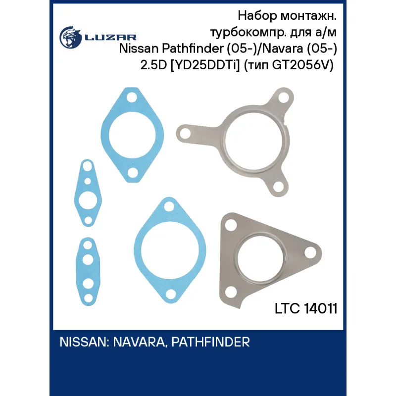 Набор монтажн. турбокомпр. для а/м Nissan Pathfinder (05-)/Navara (05-) 2.5D [YD25DDTi] (тип GT2056V) (прокл.) Характеристики: Артикул: LTC 14011 OEM номера: 14411-EB300, 14411DK1498, 14411DY300 Количество на автомобиль: 1 Материал: Сталь, безасбестовый картон Сопутствующий товар: Турбокомпрессор: LAT 1401 Сопутствующий товар: А... Читать полностью →
