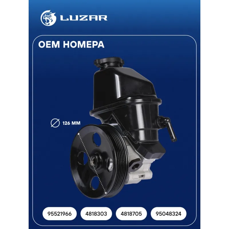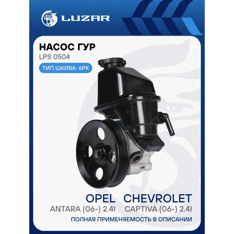 Насос ГУР для автомобилей Chevrolet Captiva (11-)/Opel Antara (06-) 2.4i Характеристики: Артикул: LPS 0504 OEM номера: 95048324, 95521966, 4818303, 4818705 Количество на автомобиль: 1 Давление, Bar: 105 Диаметр шкива, мм: 126 Тип шкива: 6PK Направление вращения: По часовой стрелке Производительность, л/ч: 540 Подходит для авто: Chevrolet Captiva (11-) Opel Antara (06-) Для проверки применяемости отправьте VIN автомобиля через вкладку "Есть вопросы о товаре?" Комплектация: Насос гидроусилителя с бачком Паспорт изделия Гарантия: от 1 года.