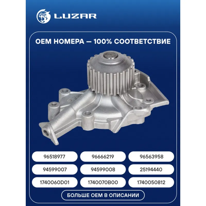 Насос водяной для автомобилей Daewoo Matiz (98-) Характеристики: Артикул: LWP 0558 OEM номера: 1740060D01, 1740070B00, 1740050812, 1740061810, 96518977, 96666219, 96563958, 94599007, 94599008, 25194440 Трансмиссия: MT/AT Материал крыльчатки: Листовая сталь Кондиционер: +/- Сопутствующий товар: Термостаты: LT 0582 Подходит для авто: Daewoo Matiz (98-), Matiz (01-), Matiz (05-), Tico (91-) Chevrolet Spark (05-) Для проверки применяемости отправьте VIN автомобиля через вкладку "Есть вопросы о товаре?" Комплектация: Насос водяной Уплотнительная прокладка Паспорт изделия Гарантия: от 1 года.