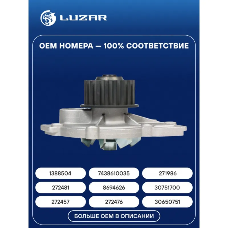 Насос водяной для автомобилей Ford Mondeo/Volvo S80/XC70 2.5i Характеристики: Артикул: LWP 1025 OEM номера: 1388504, 7438610035, 271986, 272481, 8694626, 30751700, 272457, 272476, 30650751, 30684432, 6G9N8591AA Трансмиссия: MT/AT Материал крыльчатки: Листовая сталь Кондиционер: +/- Сопутствующий товар: Термостаты: LT 0902; LT 1041; LT 1093 Подходит для авто: Ford Focus II ST (05-), Kuga (08-), Mondeo IV (07-), S-Max (06-) Renault Laguna I (94-), Safrane II (96-) Volvo 850 (91-), 960 (90-), S40 (96-), S40 (04-), S60 (00-), V50 (04-), V70 (97-), V70 (07-), V70 (00-), S80 (98-), S80 II (06-), C30 (06-), XC90 (02-), C70 (97-), C70 (06-), V70 (07-), XC70 (07-) Для проверки применяемости отправьте VIN автомобиля через вкладку "Есть вопросы о товаре?" Комплектация: Паспорт изделия Водяной насос Уплотнительная прокладка Гарантия: от 1 года.