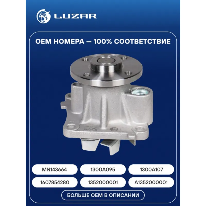 Насос водяной для автомобилей Mitsubishi Lancer X (07-)/ASX (10-) 1.5i/1.6i/Москвич 3 (22-) 1.5T Характеристики: Артикул: LWP 1116 OEM номера: MN143664, 1300A095, 1300A107, 1607854280, 1352000001, A1352000001, 1041100GH500 Трансмиссия: MT/AT Материал крыльчатки: Листовая сталь Кондиционер: +/- Сопутствующий товар: Термостаты: LT 1116 Подходит для авто: Mitsubishi Eclipse Cross (17-), Lancer X (07-), ASX (10-) Smart Forfour (04-) JAC J7 (20-), JS4 (20-), JS6 (22-) MOSKVICH 3 (22-) Peugeot 4008 (12-) Citroen C4 Aircross (12-) Для проверки применяемости отправьте VIN автомобиля через вкладку "Есть вопросы о товаре?" Комплектация: Насос водяной Паспорт изделия Уплотнительная прокладка Гарантия: от 1 года.