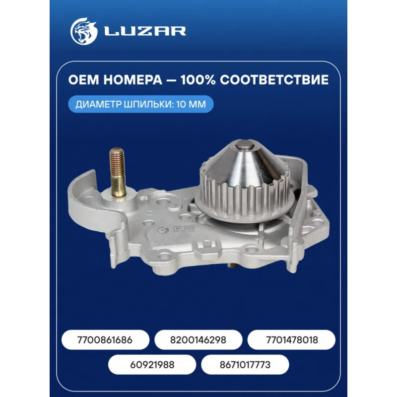 Насос водяной для автомобилей Renault Logan (04-)/Largus (12-) 8V [K7M; K7J] (шпилька D 10мм) Характеристики: Артикул: LWP 0998 OEM номера: 7700861686, 8200146298, 7701478018, 60921988, 8671017773 Трансмиссия: MT/AT Материал крыльчатки: Алюминиевый сплав Кондиционер: +/- Сопутствующий товар: Термостаты: LT 0822; LT 0901; LT 0902; LT 0914; LT 0915; LT 0916 Двигатель: [K7M; K7J] Диаметр шпильки: 10мм Подходит для авто: Renault Kangoo (97-), Logan (04-), Clio II (98-), Clio Symbol (01-), Symbol (01-), Megane I (95-), Megane Scenic I (96-) ВАЗ Largus (12-) Для проверки применяемости отправьте VIN автомобиля через вкладку "Есть вопросы о товаре?" Комплектация: Уплотнительная прокладка Паспорт изделия Насос водяной Гарантия: от 1 года.