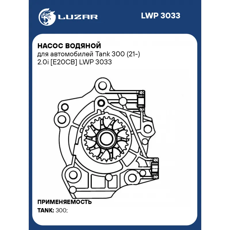 Насос водяной для автомобилей Tank 300 (21-) 2.0i [E20CB] LWP 3033 LUZAR