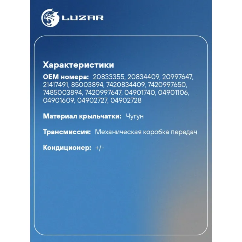 Насос водяной для автомобилей Volvo Truck FE/FL (00-) [D6/7]/Renault Midlum (00-) [DXi5/7] Характеристики: Артикул: LWP 1066 OEM номера: 20833355, 20834409, 20997647, 21417491, 85003894, 7420834409, 7420997650, 7485003894, 7420997647, 04901740, 04901106, 04901609, 04902727, 04902728, 04902798, 04906168 Трансмиссия: Механическая коробка передач Кондиционер: +/- Материал крыльчатки: Чугун Подходит для авто: RENAULT TRUCKS Premium II (05-) Volvo FE (06-) Для проверки применяемости отправьте VIN автомобиля через вкладку "Есть вопросы о товаре?" Комплектация: Насос водяной - 1 шт Прокладка - 1 шт Гарантия: от 1 года.