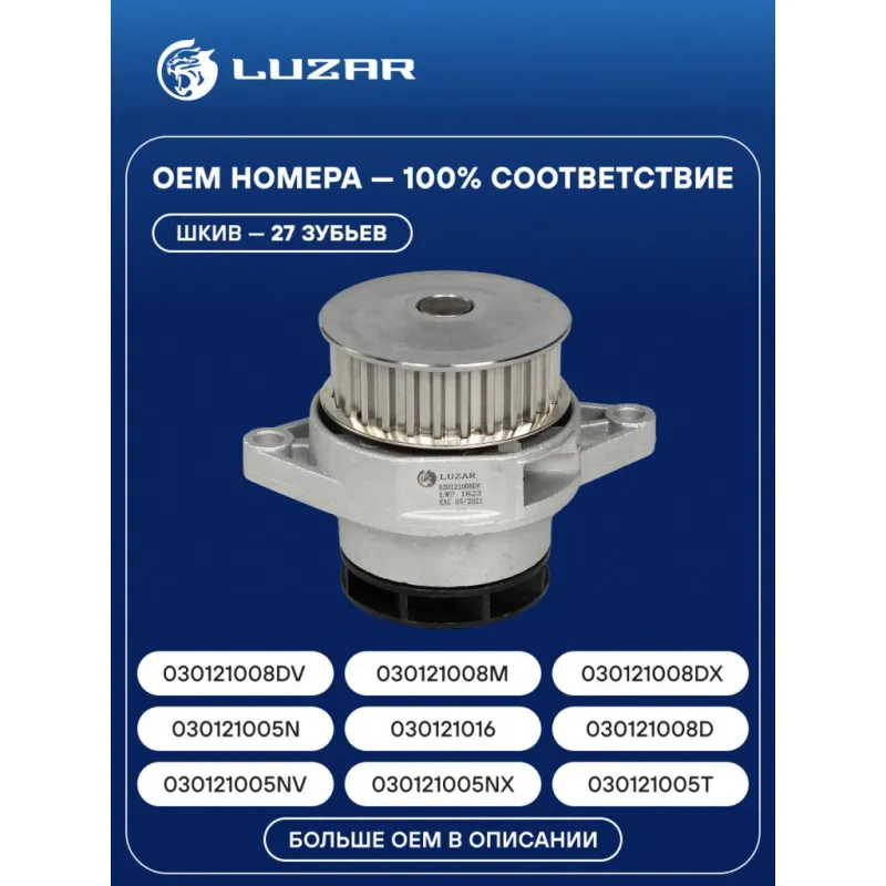 Насос водяной для автомобилей VW Golf III (91-) 1.4i/1.6i (шкив 27зуб.) LWP 1823 LUZAR