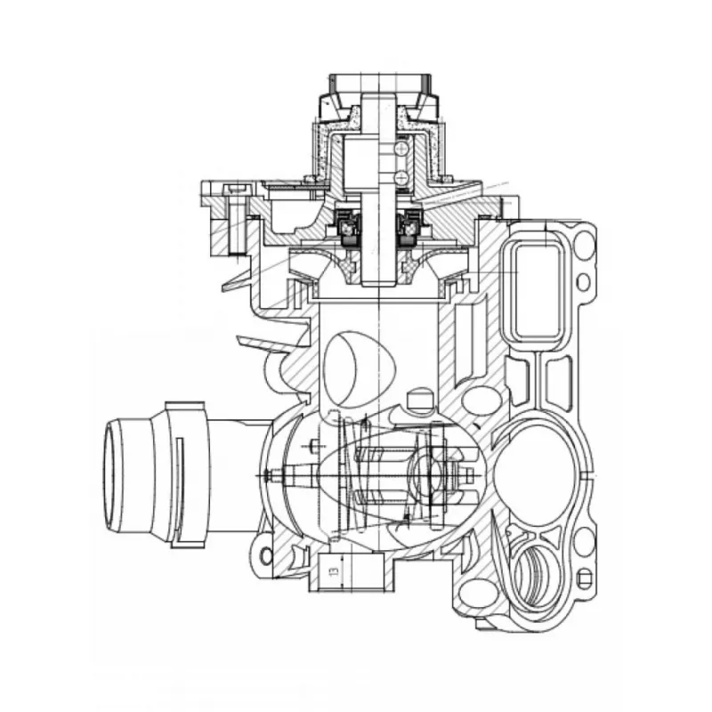| Комплектация: | алюминиевый насос в сборе с корпусом (алюминиевый) и термостатом. |