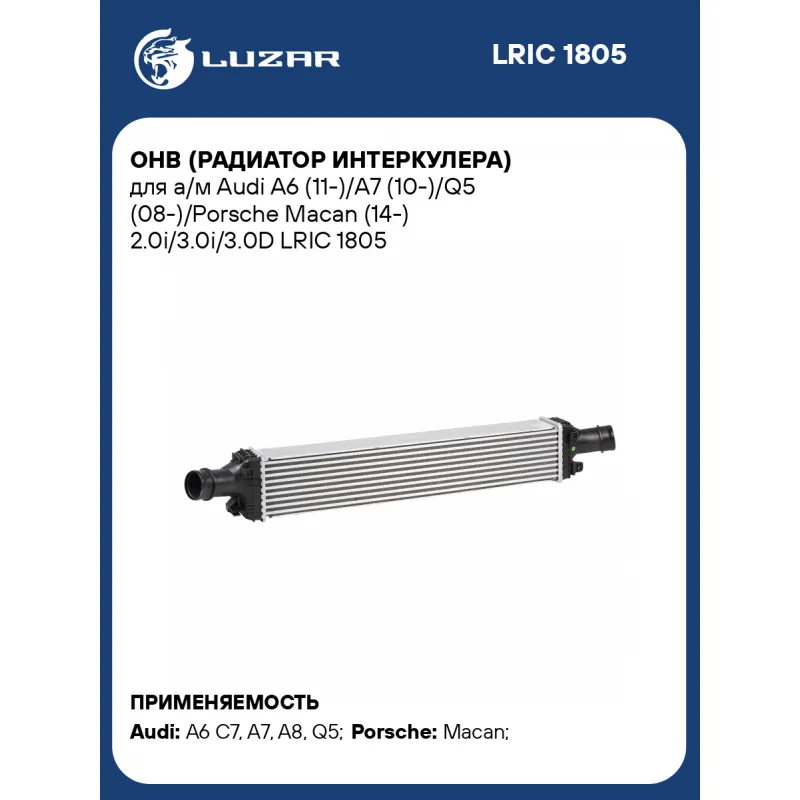 ОНВ (радиатор интеркулера) для а/м Audi A6 (11-)/A7 (10-)/Q5 (08-)/Porsche Macan (14-) 2.0i/3.0i/3.0D Характеристики: Артикул: LRIC 1805 OEM номера: 8K0145805E, 8K0145805AC, 95B145805A Трансмиссия: MT/AT Кондиционер: +/- Длина сердцевины, мм: 720 Высота сердцевины, мм: 133 Толщина сердцевины, мм: 80 Материал сердцевины: алюминий Материал бачков: пластик Тип сердцевины: паяная Сопутствующий товар: Радиаторы охлаждения: LRc 1880; LRc 18180 Подходит для авто: Audi A6 C7 (11-), A7 (10-), A8 (10-), Q5 (08-), A7 (10-) Porsche Macan (14-) Для проверки применяемости отправьте VIN автомобиля через вкладку "Есть вопросы о товаре?" Комплектация: Радиатор интеркулера Паспорт изделия Гарантия: от 1 года.