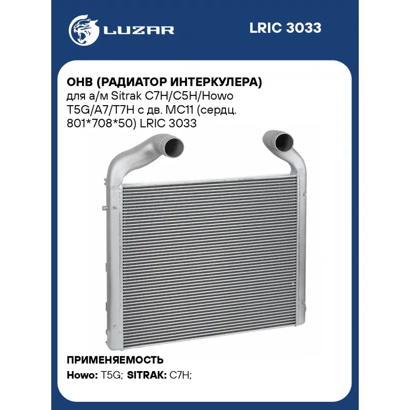 ОНВ (радиатор интеркулера) для а/м Sitrak C7H/C5H/Howo T5G/A7/T7H с дв. MC11 (сердц. 801*708*50) Характеристики: Артикул: LRIC 3033 OEM номера: 812W06100-0004, 812W06100-0004/1 Трансмиссия: MT/AT Кондиционер: +/- Длина сердцевины, мм: 801 Высота сердцевины, мм: 708 Толщина сердцевины, мм: 50 Материал сердцевины: алюминий Материа... Читать полностью →