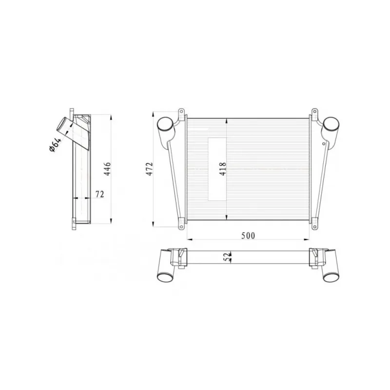 ОНВ (радиатор интеркулера) для автомобилей КАМАЗ Компас 9 (43089)/JAC N75/N80/N90 с двиг. Cummins ISF 3.8 Характеристики: Артикул: LRIC 0709 OEM номера: 1109020LE170 Трансмиссия: MT Кондиционер: +/- Длина сердцевины, мм: 500 Высота сердцевины, мм: 418 Толщина сердцевины, мм: 52 Материал сердцевины: алюминий Материал бачков: алюм... Читать полностью →