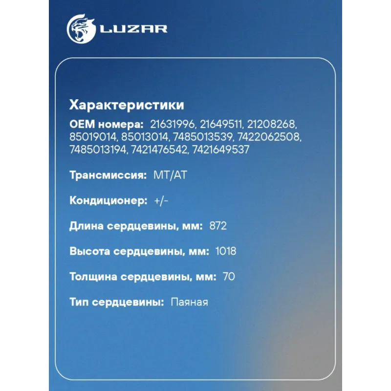 | Сопутствующий товар: Радиаторы охлаждения | LRc 1054 |