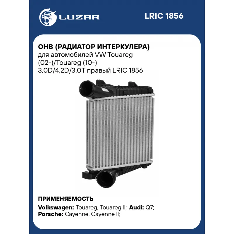 ОНВ (радиатор интеркулера) для автомобилей VW Touareg (02-)/Touareg (10-) 3.0D/4.2D/3.0T правый Характеристики: Артикул: LRIC 1856 OEM номера: 7P0 145 804 A, 958.110.64010, 7L6 145 804, 7L6 145 804A, 7P0 145 804 B, 95511064010 Трансмиссия: MT/AT Кондиционер: +/- Длина сердцевины, мм: 287 Высота сердцевины, мм: 292 Толщина сердцевины, мм: 50 Материал сердцевины: алюминий Тип сердцевины: паяная Сопутствующий товар: Радиаторы охлаждения: LRc 1855; LRc 1856; LRc 1858 Сторона установки: Правая Подходит для авто: Volkswagen Touareg (02-), Touareg II (10-) Audi Q7 (06-) Porsche Cayenne (02-), Cayenne II (10-) Для проверки применяемости отправьте VIN автомобиля через вкладку "Есть вопросы о товаре?" Комплектация: Радиатор интеркулера Паспорт изделия Гарантия: от 1 года.