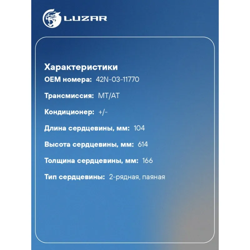 | Тип сердцевины | 2-рядная, паяная |