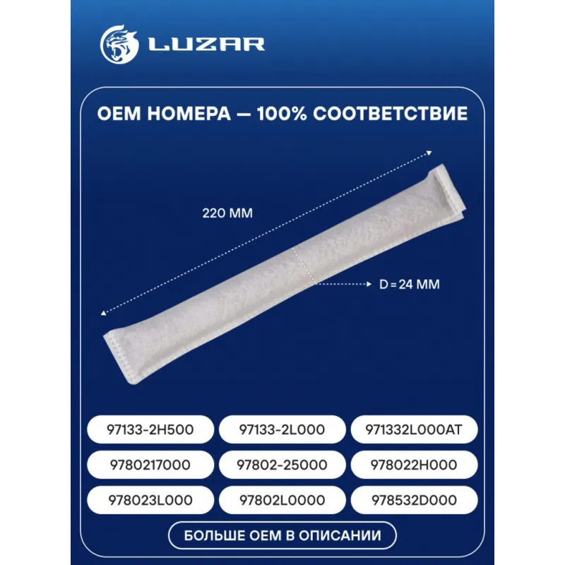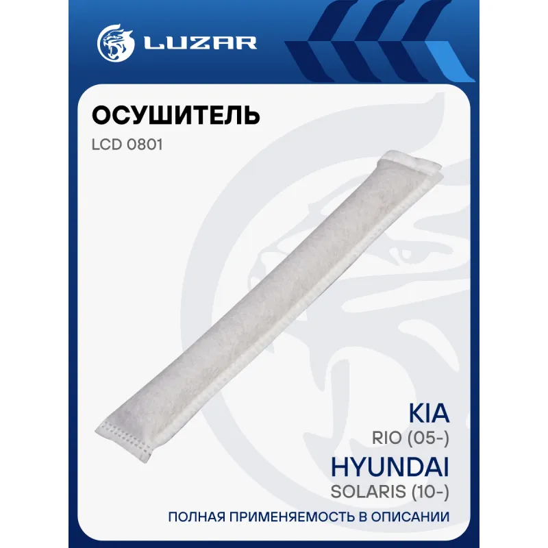Осушитель кондиционера для автомобилей Solaris (10-)/Kia Rio (05-) Характеристики: Артикул: LCD 0801 OEM номера: 978022H000, 97133-2H500, 97133-2L000, 97802-25000, 9780217000, 978023L000, 97853-2F100, 971332L000AT, 978532D000, 97802L0000 Материал: Силикагель Диаметр: 24 Высота: 220 Хладагент: R-134a Сопутствующий товар: Радиаторы кондиционера (конденсеры): LRAC 0801; LRAC 0807; LRAc 08120; LRAC 08125; LRAC 0817; LRAC 0819; LRAC 081C1; LRAC 0820; LRAC 0821; LRAC 0825; LRAC 0827; LRAC 0830; LRAC 0831; LRAC 0835; LRAC 0839; LRAC 0863; LRAC 08D2; LRAC 08D7; LRAC 08G1; LRAC 08H2; LRAC 08K2; LRAC 08L4; LRAC 08L5; LRAC 08R0; LRAC 08S5; LRAC 08X0; LRAC 08Y5; LRAC HUAc99160; LRAC HUAc99250 Сопутствующий товар: Компрессоры кондиционера: LCAC 0805; LCAC 0811; LCAC 0814; LCAC 0822; LCAC 0837; LCAC 0851; LCAC 0865; LCAC 0876; LCAC 08900; LCAC 08B2; LCAC 08H1; LCAC 08L4; LCAC 08S5 Сопутствующий товар: Клапаны расширительные кондиционера (ТРВ): LTRV 0805; LTRV 0806; LTRV 0807; LTRV 0808; LTRV 0812; LTRV 0814; LTRV 0865 Совместимость с радиаторами кондиционера LUZAR: Совместим с LRAC 0118, LRAC 0552, LRAC 0824, LRAC 0826, LRAC 0829, LRAC 0842, LRAC 0843, LRAC 08L4, LRAC 08L5, LRAC 08X0, LRAC 08X6, LRAC 08M0, LRAC 0978, LRAC 1013, LRAC 1075, LRAC 1412, LRAC 14CM, LRAC 1755, LRAC 1810, LRAC 1811, LRAC 1811J, LRAC 1820, LRAC 1923, LRAC 2605, Подходит для авто: Hyundai Solaris I (10-), Solaris II (17-), Accent II (99-), Accent II (99-), Elantra III (00-), Elantra IV (06-), Elantra V (11-), Genesis I (08-), Getz (02-), i10 (07-), i10 (07-), i30 I (07-), i30 II (11-), i20 (08-), i20 (08-), iX35 (10-), iX35 (10-), iX35 (10-), iX35 (10-), Santa Fe (00-), Santa Fe II (06-), Santa Fe III (12-), Santa Fe III (12-), Sonata V (NF) (05-), Sonata V (NF) (05-), Sonata VI (YF) (10-), Sonata VII (14-), Tucson III (15-), Tucson III (15-), Tucson II (11-) Kia Rio II (05-), Rio II (05-), Rio III (11-), Rio III (11-), Rio IV (17-), Rio IV (17-), CEE'D (07-), CEE'D (12-), Optima (11-), Optima (05-), Picanto (04-), PRO CEED (JD) (13-), Soul I (08-), Soul II (14-), Soul II (14-), Sportage III (10-), Sportage IV (16-), Sportage IV (16-), K5 III (20-) Для проверки применяемости отправьте VIN автомобиля через вкладку "Есть вопросы о товаре?" Комплектация: Осушитель Гарантия: от 1 года.