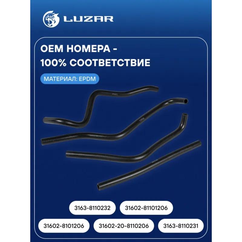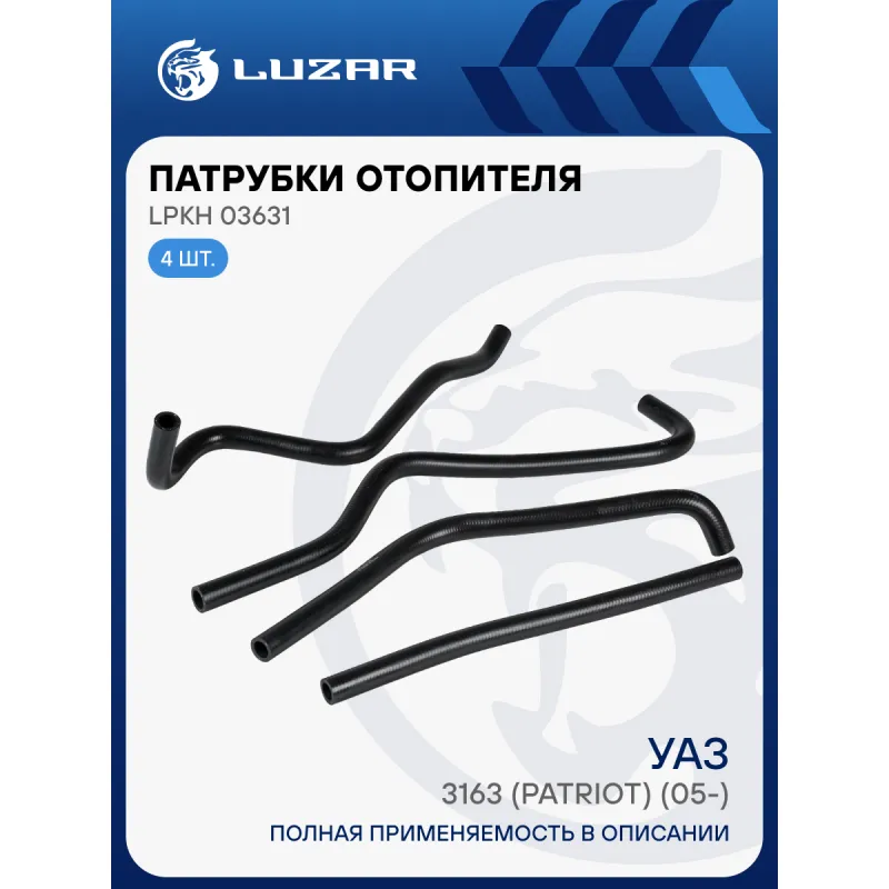 Патрубки отоп. для а/м УАЗ 3163 Патриот [409] E-3/4 (EPDM, кмпл., 4шт.) Характеристики: Артикул: LPKh 03631 OEM номера: 31602-8101206, 31602-20-8110206, 3163-8110231, 3163-8110232, 31602-81101206 Трансмиссия: MT Кондиционер: + Сопутствующий товар: Радиаторы отопителя: LRh 03631b, LRh 03638 Количество на автомобиль: 1 Материал: Резина (EPDM) армированная капроновой нитью Применяемость: ЗМЗ - 409 Подходит для авто: УАЗ 3163 (Patriot) (05-), Patriot (08-), 31631 Для проверки применяемости отправьте VIN автомобиля через вкладку "Есть вопросы о товаре?" Комплектация: Патрубки отопления (EPDM) - 4 шт Паспорт изделия. Гарантия: от 1 года.