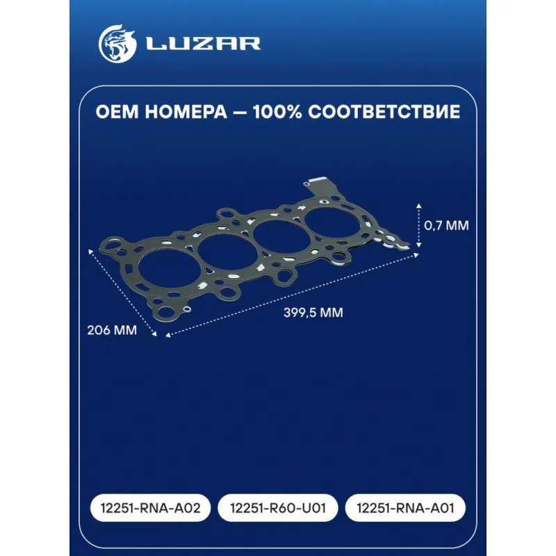 Прокладка ГБЦ для а/м Honda CR-V (06-)/Civic VIII (06-)/Accord (08-) 1.8i/2.0i [R] Характеристики: Артикул: LES 12301 OEM номера: 12251-RNA-A02, 12251-R60-U01, 12251-RNA-A01 Ширина, мм: 206 Длина, мм: 399.5 Материал прокладки: сталь Диаметр отверстий, мм: 81.5 Количество слоев: 3 Прокладка, толщина,мм: 0.7 Количество на автомоби... Читать полностью →