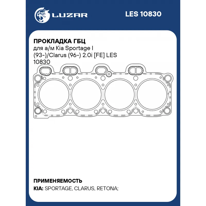 Прокладка ГБЦ для а/м Kia Sportage I (93-)/Clarus (96-) 2.0i [FE] Характеристики: Артикул: LES 10830 OEM номера: 0K01310271 Ширина, мм: 161 Длина, мм: 415 Материал прокладки: безасбестовый композитный материал на металлическом каркасе Диаметр отверстий, мм: 87.5 Количество слоев: 1 Прокладка, толщина,мм: 1.3 Количество на автомо... Читать полностью →