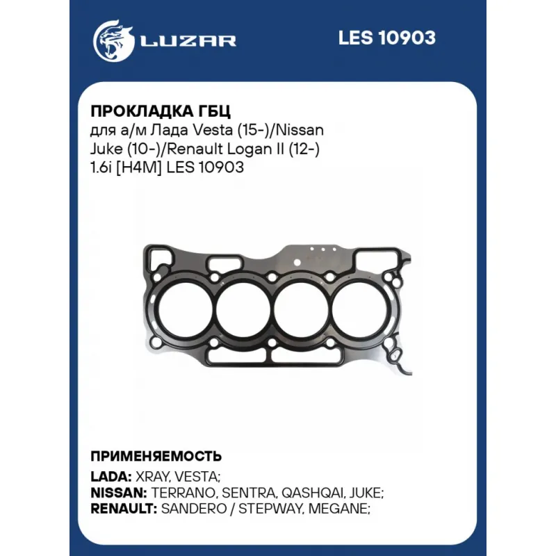 Прокладка ГБЦ для а/м Лада Vesta (15-)/Nissan Juke (10-)/Renault Logan II (12-) 1.6i [H4M] Характеристики: Артикул: LES 10903 OEM номера: 11044-1KT0A, 11 04 41K T0B, 11044-00Q2A, 110445H70A, 11 04 499 22R Ширина, мм: 193 Длина, мм: 393 Материал прокладки: сталь Диаметр отверстий, мм: 79 Количество слоев: 2 покрытие прокладки: частичное FKM с двух сторон Прокладка, толщина,мм: 0.5 Количество на автомобиль: 1 Комплектация: Прокладка - 1 шт Гарантия: от 1 года.