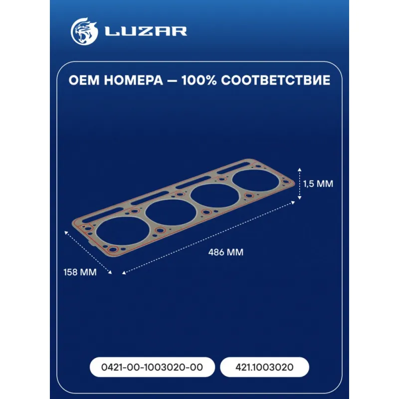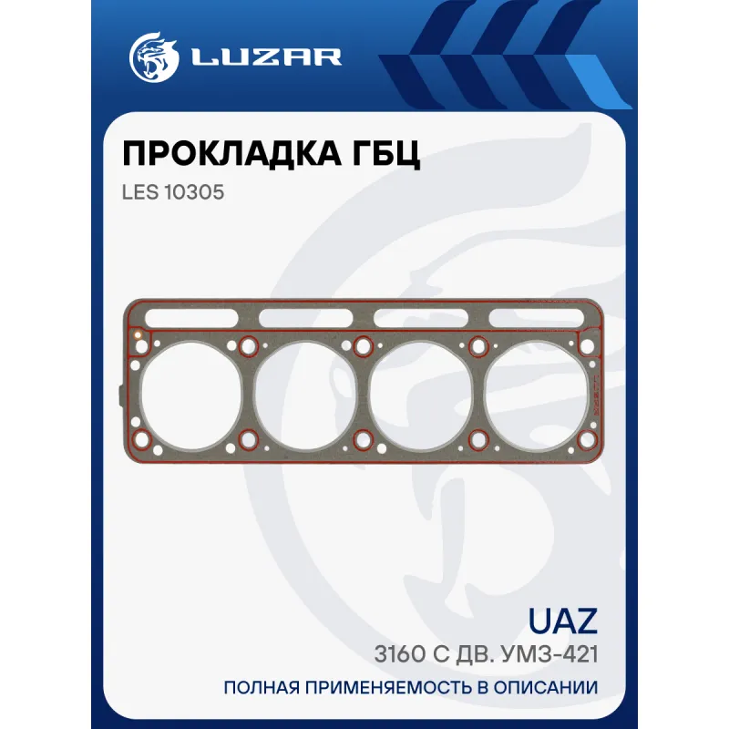 Прокладка ГБЦ для а/м УАЗ 3160 с дв. УМЗ-421 Характеристики: Артикул: LES 10305 OEM номера: 0421-00-1003020-00, 421.1003020 Ширина, мм: 158 Длина, мм: 486 Материал прокладки: безасбестовый композитный материал на металлическом каркасе Диаметр отверстий, мм: 102 Количество слоев: 1 покрытие прокладки: частичное силиконовое с двух сторон (красный цвет) Прокладка, толщина,мм: 1.5 Количество на автомобиль: 1 Комплектация: Прокладка - 1 шт Гарантия: от 1 года.