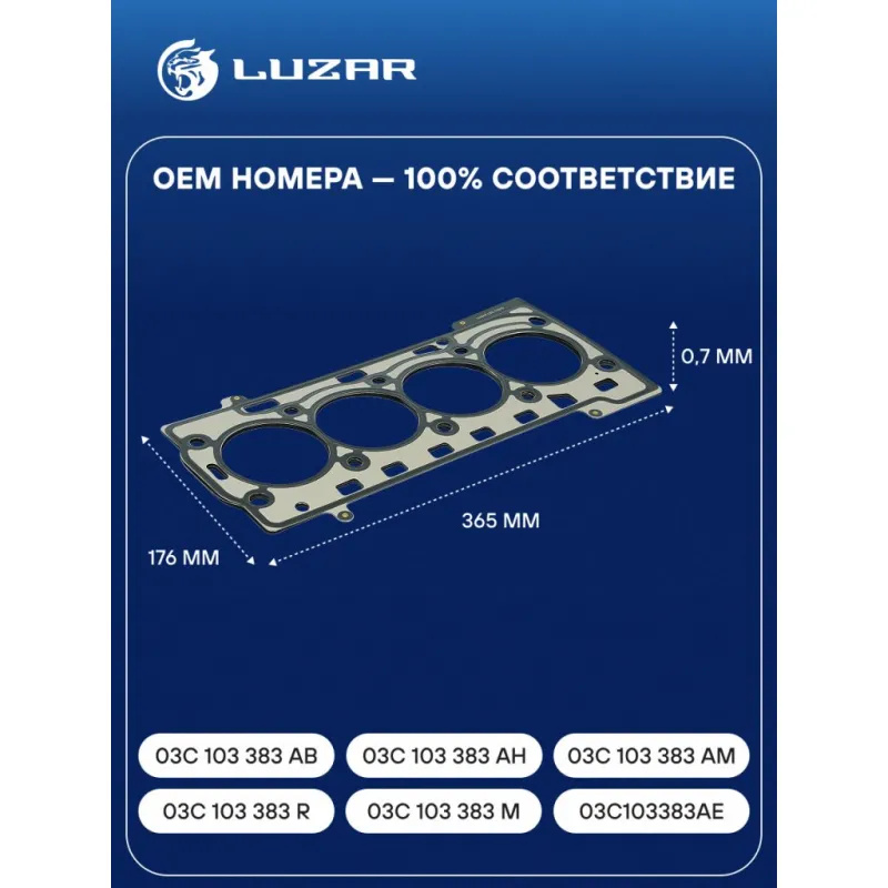 Прокладка ГБЦ для а/м VW Jetta (10-)/Skoda Fabia II (07-)/Octavia (04-) 1.4i/1.6i Характеристики: Артикул: LES 11810 OEM номера: 03C 103 383 AB, 03C 103 383 AH, 03C 103 383 AM, 03C 103 383 R, 03C 103 383 M, 03C103383AE Ширина, мм: 176 Длина, мм: 365 Материал прокладки: сталь Диаметр отверстий, мм: 77.5 Количество слоев: 3 Прокладка, толщина,мм: 0.7 Количество на автомобиль: 1 покрытие прокладки: частичное FKM с двух сторон Комплектация: Прокладка - 1 шт Гарантия: от 1 года.