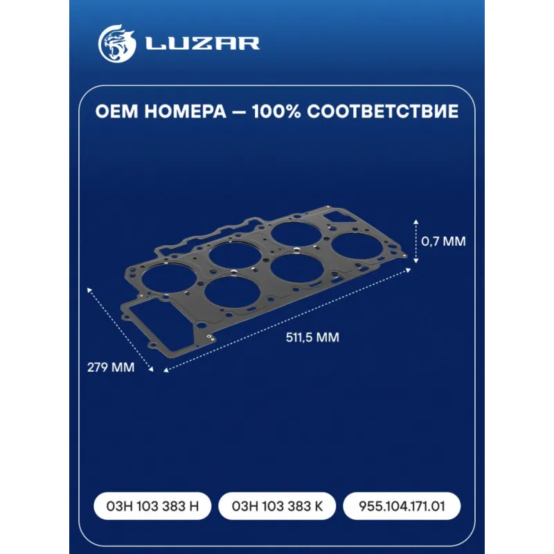 Прокладка ГБЦ для а/м VW Touareg II (10-)/Audi Q7 (06-) 3.6i [CMTA;BHK] Характеристики: Артикул: LES 11813 OEM номера: 955.104.171.01, 03H 103 383 H, 03H 103 383 K Ширина, мм: 279 Длина, мм: 511.5 Материал прокладки: сталь Диаметр отверстий, мм: 90 Количество слоев: 3 покрытие прокладки: Полное FKM с двух сторон Прокладка, толщина,мм: 0.7 Количество на автомобиль: 1 Комплектация: Прокладка - 1 шт Гарантия: от 1 года.