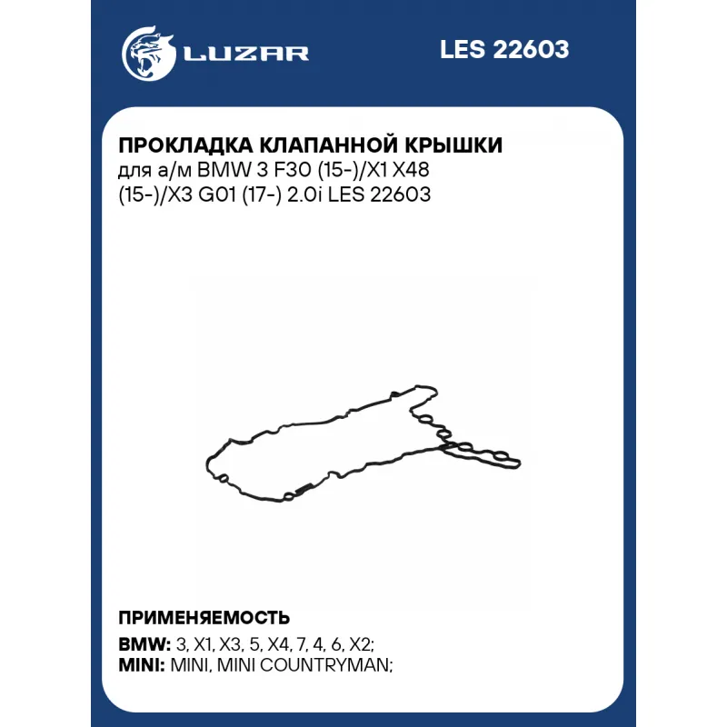 Прокладка клапанной крышки для а/м BMW 3 F30 (15-)/X1 X48 (15-)/X3 G01 (17-) 2.0i LES 22603 LUZAR