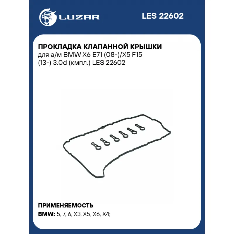 Прокладка клапанной крышки для а/м BMW X6 E71 (08-)/X5 F15 (13-) 3.0d (кмпл.) Характеристики: Артикул: LES 22602 OEM номера: 11128515732, 8515732 Количество на автомобиль: 1 Материал прокладки: NBR Комплектация: Прокладка - 7 шт Гарантия: от 1 года.