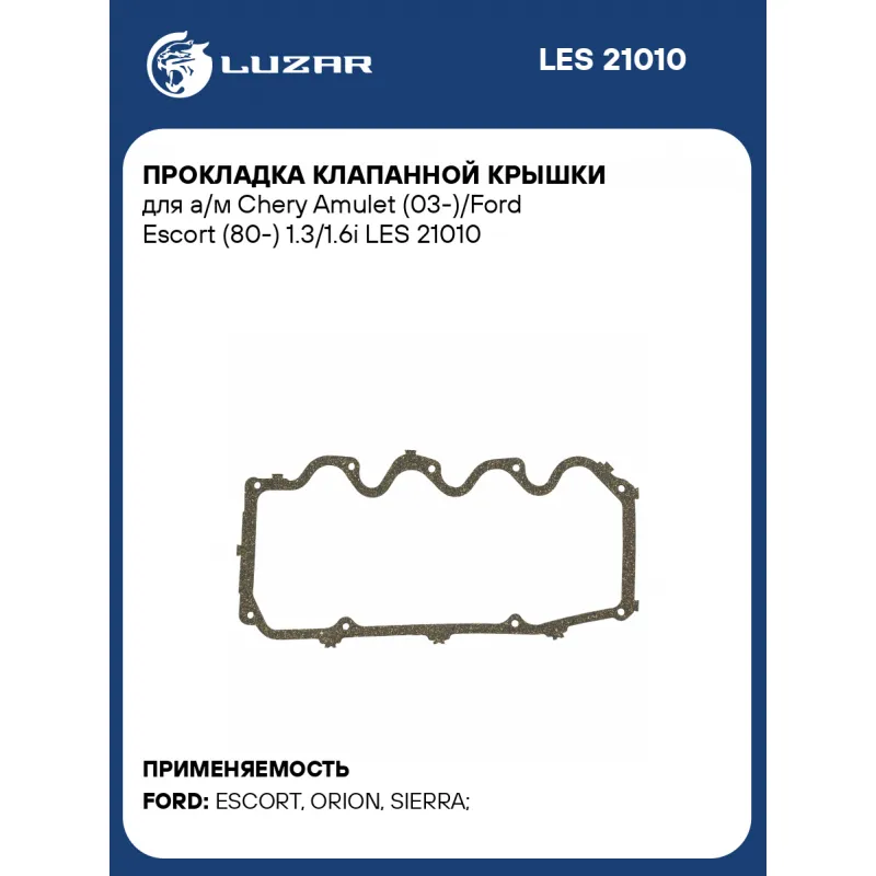 Прокладка клапанной крышки для а/м Chery Amulet (03-)/Ford Escort (80-) 1.3/1.6i Характеристики: Артикул: LES 21010 OEM номера: 1 651 775 Количество на автомобиль: 1 Материал прокладки: пробка Комплектация: Прокладка - 1 шт Гарантия: от 1 года.