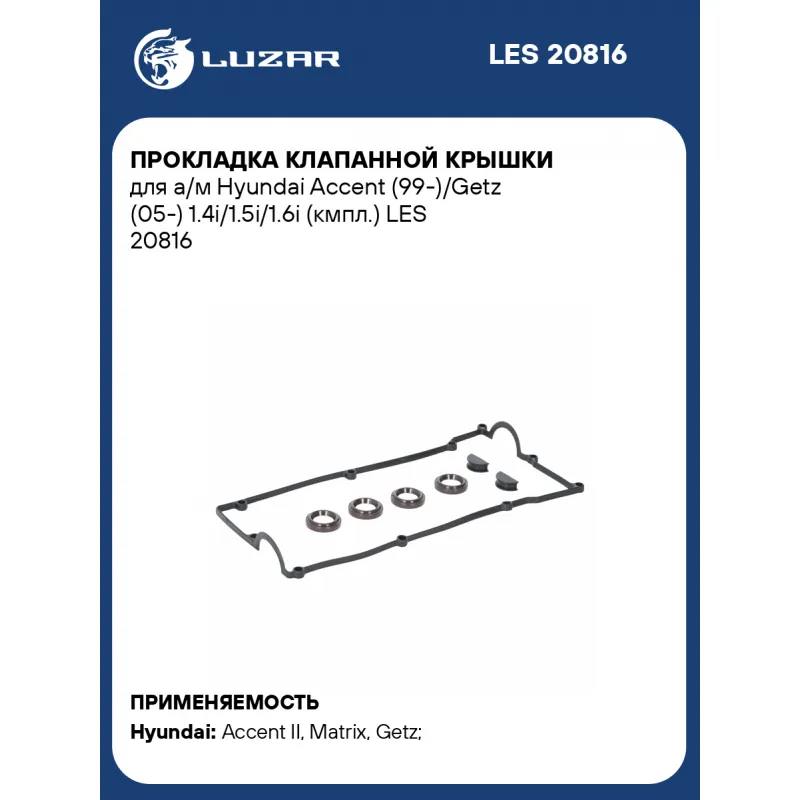 Прокладка клапанной крышки для а/м Hyundai Accent (99-)/Getz (05-) 1.4i/1.5i/1.6i (кмпл.) LES 20816 LUZAR