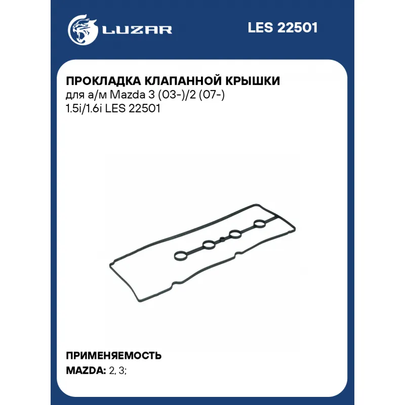 Прокладка клапанной крышки для а/м Mazda 3 (03-)/2 (07-) 1.5i/1.6i LES 22501 LUZAR