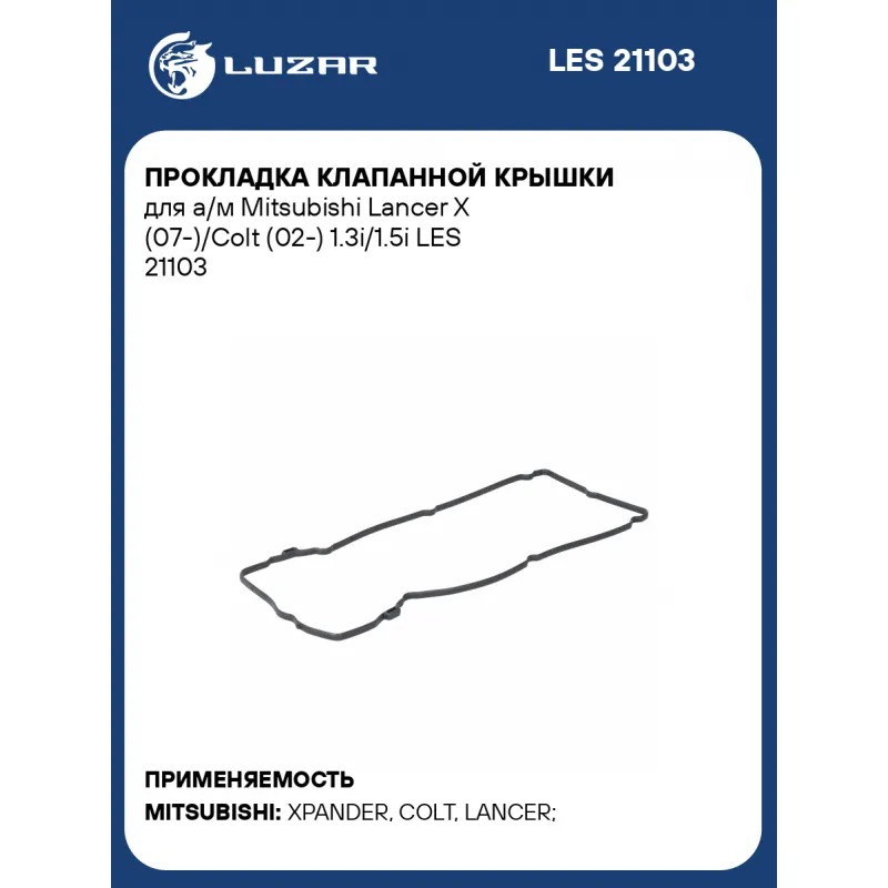 Прокладка клапанной крышки для а/м Mitsubishi Lancer X (07-)/Colt (02-) 1.3i/1.5i Характеристики: Артикул: LES 21103 OEM номера: MN158200, 135 016 00 21 Количество на автомобиль: 1 Материал прокладки: NBR Комплектация: Прокладка - 1 шт Гарантия: от 1 года.