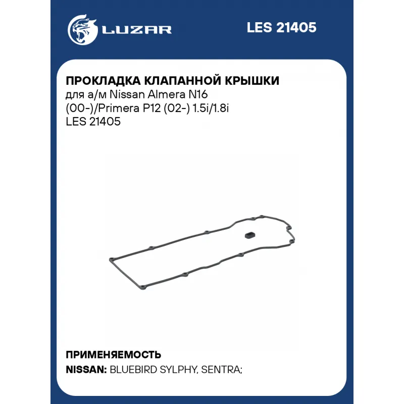 Прокладка клапанной крышки для а/м Nissan Almera N16 (00-)/Primera P12 (02-) 1.5i/1.8i LES 21405 LUZAR