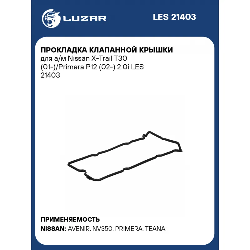 Прокладка клапанной крышки для а/м Nissan X-Trail T30 (01-)/Primera P12 (02-) 2.0i LES 21403 LUZAR