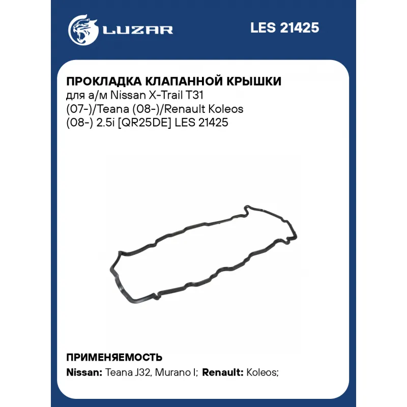 Прокладка клапанной крышки для а/м Nissan X-Trail T31 (07-)/Teana (08-)/Renault Koleos (08-) 2.5i [QR25DE] Характеристики: Артикул: LES 21425 OEM номера: 13270JG30A, 13270-JA00A Материал прокладки: NBR Количество на автомобиль: 1 Подходит для авто: Nissan Teana J32 (08-), Murano I (02-), X-Trail T31 (07-) Renault Koleos (08-) Для проверки применяемости отправьте VIN автомобиля через вкладку "Есть вопросы о товаре?" Комплектация: Прокладка клапанной крышки - 1 шт Гарантия: от 1 года.