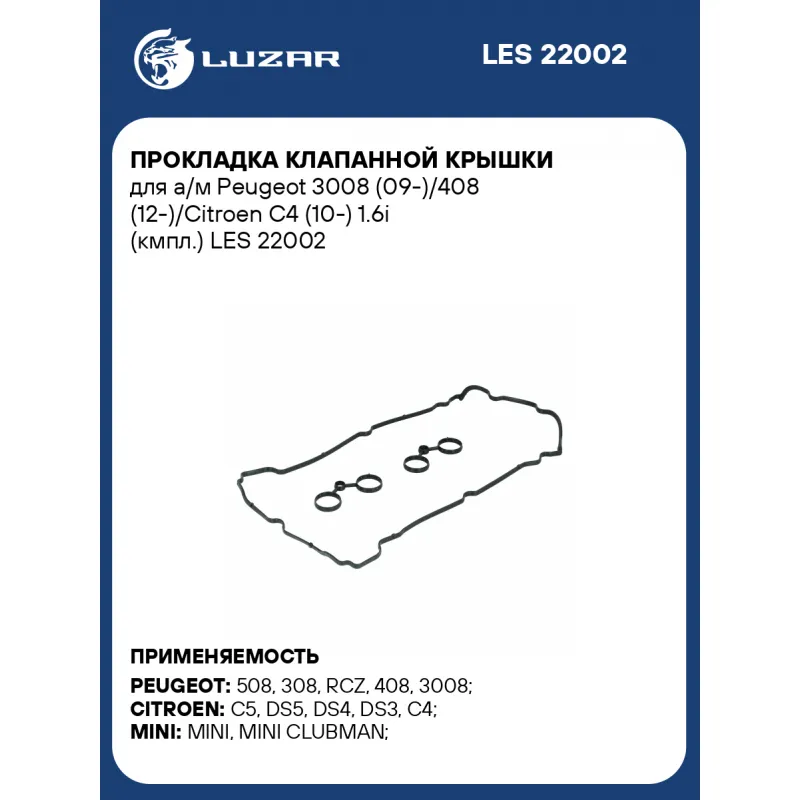 Прокладка клапанной крышки для а/м Peugeot 3008 (09-)/408 (12-)/C4 (10-) 1.6i Характеристики: Артикул: LES 22002 OEM номера: 11127572851, 7572851, 0249.E6, 0249.E7 Количество на автомобиль: 1 Материал прокладки: VMQ силикон Комплектация: Прокладка - 3 шт Гарантия: от 1 года.
