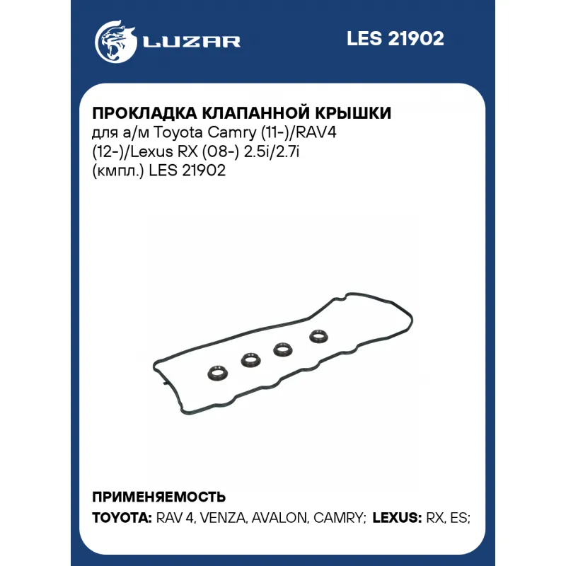 Прокладка клапанной крышки для а/м Toyota Camry (11-)/RAV4 (12-)/Lexus RX (08-) 2.5i/2.7i (кмпл.) Характеристики: Артикул: LES 21902 OEM номера: 11213-36020, 11193-36010, 111930V010, 112130V010 Количество на автомобиль: 1 Материал прокладки: NBR Комплектация: Прокладка - 5 шт Гарантия: от 1 года.
