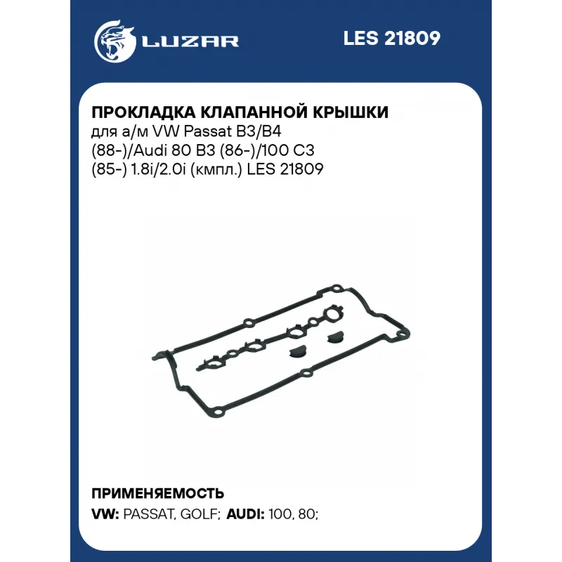 Прокладка клапанной крышки для а/м VW Passat B3/B4 (88-)/Audi 80 B3 (86-)/100 C3 (85-) 1.8i/2.0i (кмпл.) LES 21809 LUZAR