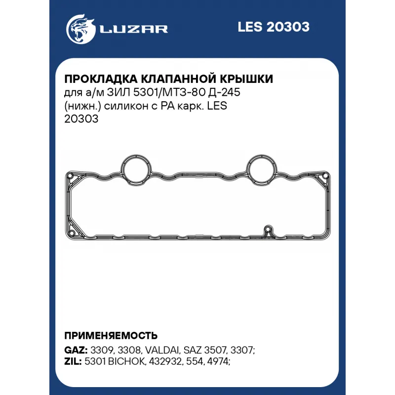Прокладка клапанной крышки для а/м ЗИЛ 5301/МТЗ-80 Д-245 (нижн.) силикон с PA карк. Характеристики: Артикул: LES 20303 OEM номера: 2401003108 Материал прокладки: MVQ Количество на автомобиль: 1 Комплектация: Прокладка - 1 шт Гарантия: от 1 года.