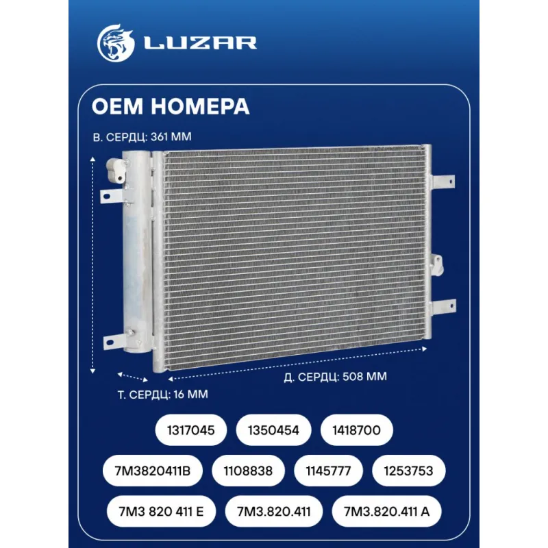 Радиатор кондиционеа для автомобилей VW Sharan (95-)/Ford Galaxy (95-) Характеристики: Артикул: LRAC 1895 OEM номера: 7M3 820 411 E, 7M3.820.411, 7M3.820.411 A, 7M3820411B, 1108838, 1145777, 1253753, 1317045, 1350454, 1418700 Количество на автомобиль: 1 Длина сердцевины, мм: 508 Высота сердцевины, мм: 361 Толщина сердцевины, мм: 16 осушитель: + Подходит для авто: Volkswagen Sharan (95-) Ford Galaxy I (95-) Для проверки применяемости отправьте VIN автомобиля через вкладку "Есть вопросы о товаре?" Комплектация: Паспорт изделия - 1 шт Радиатор кондиционера c ресивером - 1 шт Гарантия: от 1 года.