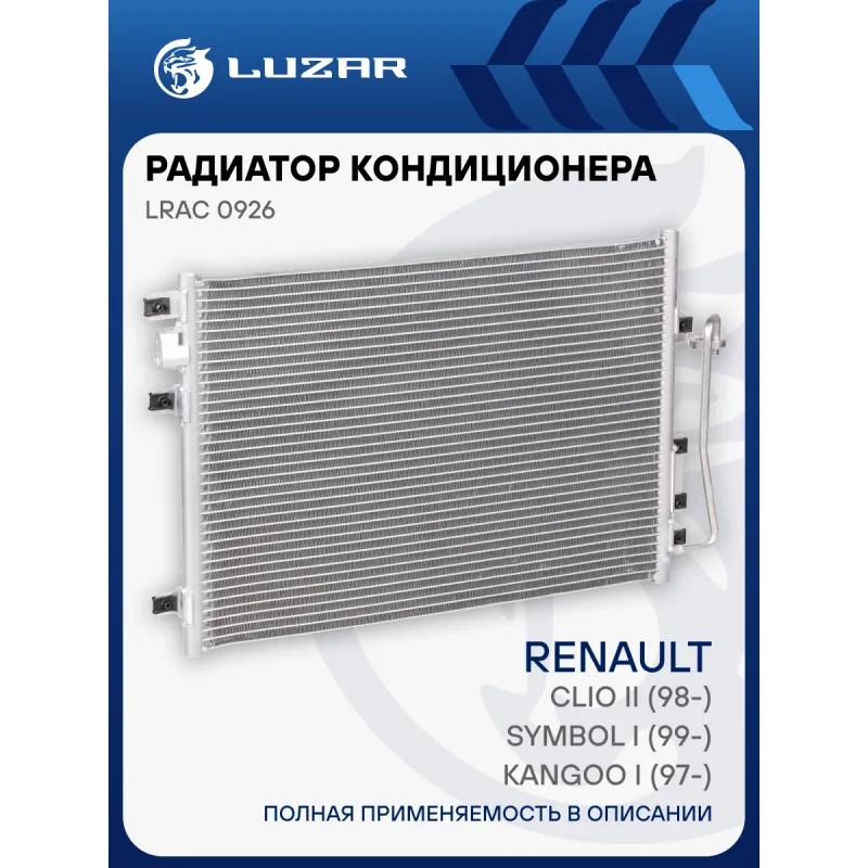 Радиатор кондиционера для автомобилей Clio II (98-)/Symbol I (99-)/Kangoo I (97-) Характеристики: Артикул: LRAC 0926 OEM номера: 77 00 428 083, 82 00 106 950, 82 00 024 038, 82 00 211 563, 82 00 757 789, 82 00 778 910, 7711368012, 8671017585 Количество на автомобиль: 1 Длина сердцевины, мм: 530 Высота сердцевины, мм: 371 Толщина сердцевины, мм: 16 Сопутствующий товар: Ресиверы-осушители: LCR 0960 Сопутствующий товар: Радиаторы охлаждения: LRc 0905; LRc RELo04334; LRc RELo04382 Сопутствующий товар: Электровентиляторы охлаждения: LFc 0970 Подходит для авто: Renault Kangoo (97-), Kangoo (97-), Clio II (98-), Clio Symbol (01-), Symbol (01-) Для проверки применяемости отправьте VIN автомобиля через вкладку "Есть вопросы о товаре?" Комплектация: Радиатор кондиционера Паспорт изделия - 1 шт Радиатор кондиционера c ресивером - 1 шт Гарантия: от 1 года.