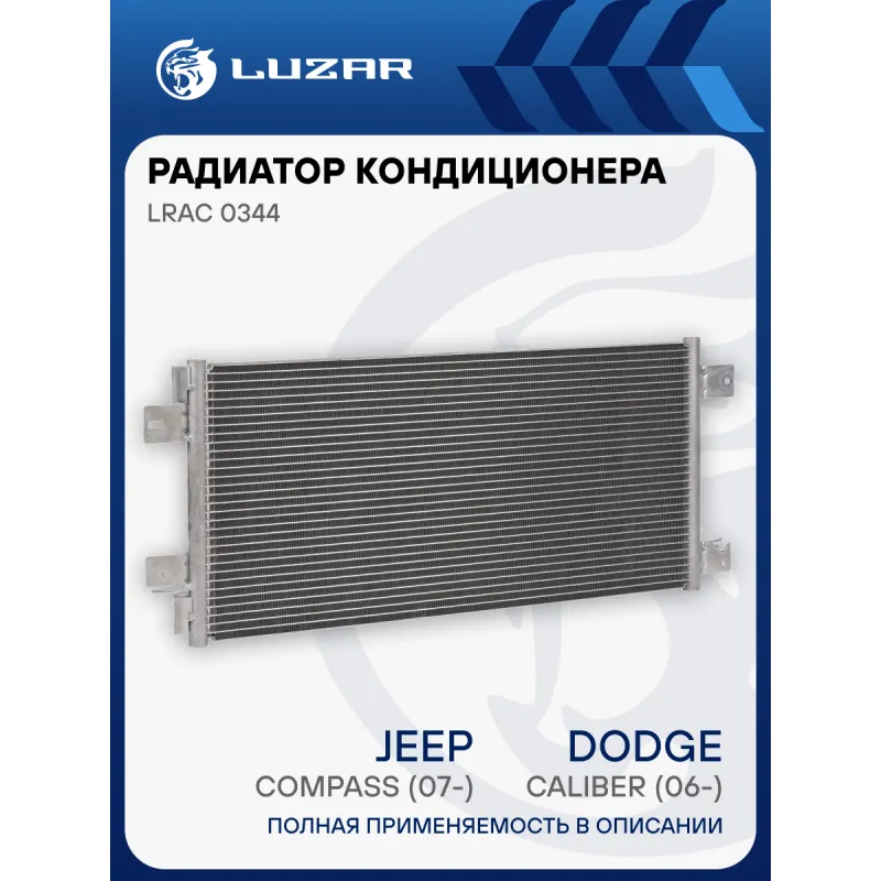 Радиатор кондиционера для автомобилей Dodge Caliber (06-)/Jeep Compass (07-)/Patriot (07-) MT Характеристики: Артикул: LRAC 0344 OEM номера: 68004052AA Количество на автомобиль: 1 Длина сердцевины, мм: 636 Высота сердцевины, мм: 321 Толщина сердцевины, мм: 18 осушитель: - Подходит для авто: Chrysler Sebring Dodge Caliber (07-), Avenger (07-) Jeep Compass (07-) Для проверки применяемости отправьте VIN автомобиля через вкладку "Есть вопросы о товаре?" Комплектация: Радиатор кондиционера Паспорт изделия - 1 шт Радиатор кондиционера c ресивером - 1 шт Гарантия: от 1 года.