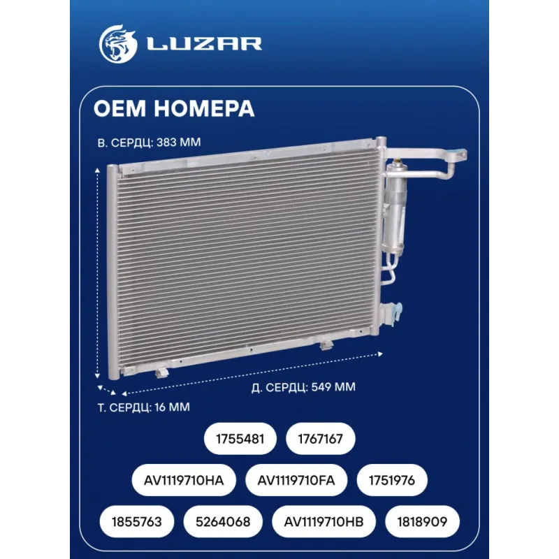 Радиатор кондиционера для автомобилей EcoSport (14-)/Ford Fiesta (12-) 1.6i/2.0i Характеристики: Артикул: LRAC 1086 OEM номера: 1 855 763, 5264068, AV1119710HB, AV1119710HA, AV1119710FA, 1818909, 1751976, 1755481, 1767167 Количество на автомобиль: 1 Длина сердцевины, мм: 549 Высота сердцевины, мм: 383 Толщина сердцевины, мм: 16 Сопутствующий товар: Радиаторы охлаждения: LRc 1023; LRc 1024; LRc 1086 Сопутствующий товар: Электровентиляторы охлаждения: LFK 1061 Ресивер: + Подходит для авто: Ford EcoSport (13-), Fiesta VI (08-) Для проверки применяемости отправьте VIN автомобиля через вкладку "Есть вопросы о товаре?" Комплектация: Радиатор кондиционера с ресивером в сборе - 1 шт Паспорт изделия - 1 шт Гарантия: от 1 года.