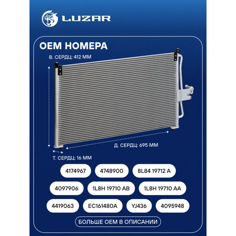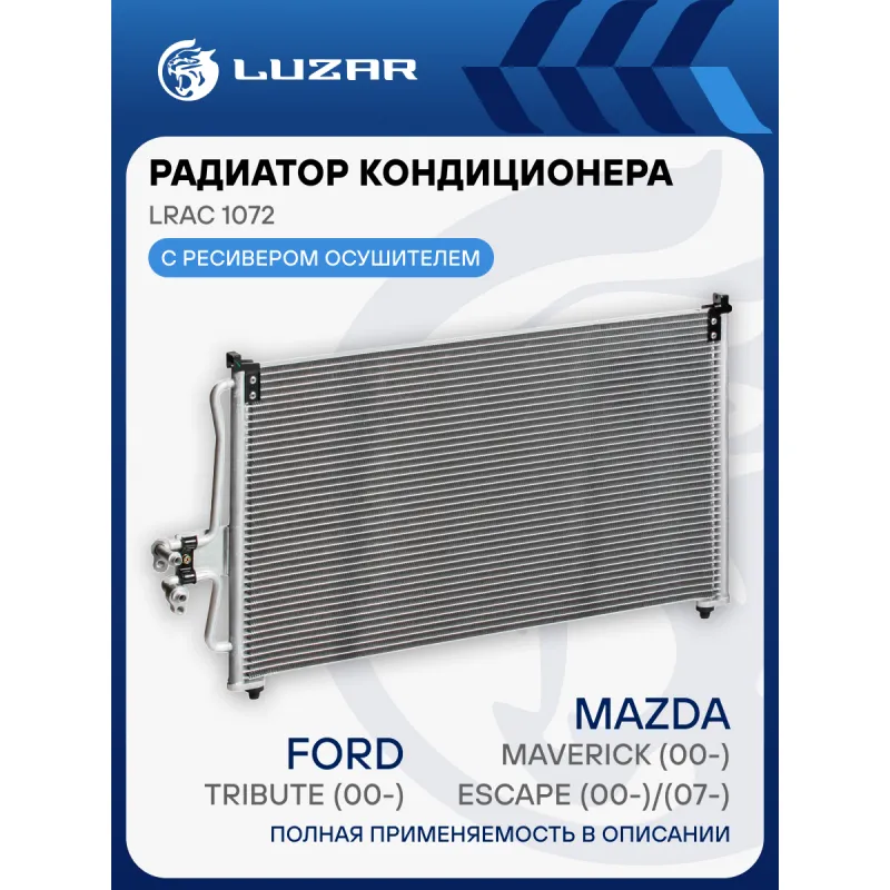 Радиатор кондиционера для автомобилей Escape (00-)/(07-)/Maverick (00-)/Tribute (00-) M/A Характеристики: Артикул: LRAC 1072 OEM номера: 4419063, EC161480A, YJ436, 4095948, 4097906, 1L8H 19710 AB, 1L8H 19710 AA, 4174967, 4748900, 8L84 19712 A, 8L8Z 19712 H, 4419058, 4431311, 4709262, 5254247, 6L8Z19712E, 6L8419710EA, CU2J19F596PA, YL8H19710AB, EC0261480B, EC0261480A Количество на автомобиль: 1 Длина сердцевины, мм: 695 Высота сердцевины, мм: 412 Толщина сердцевины, мм: 16 Сопутствующий товар: Радиаторы охлаждения: LRc 1072; LRc 1073 осушитель: + Подходит для авто: Ford Maverick II (00-) Mazda Tribute (00-), Tribute (00-), Tribute (04-) Для проверки применяемости отправьте VIN автомобиля через вкладку "Есть вопросы о товаре?" Комплектация: Паспорт изделия - 1 шт Радиатор кондиционера c ресивером - 1 шт Гарантия: от 1 года.