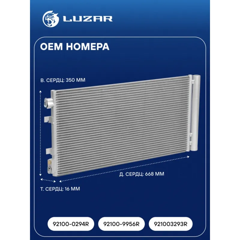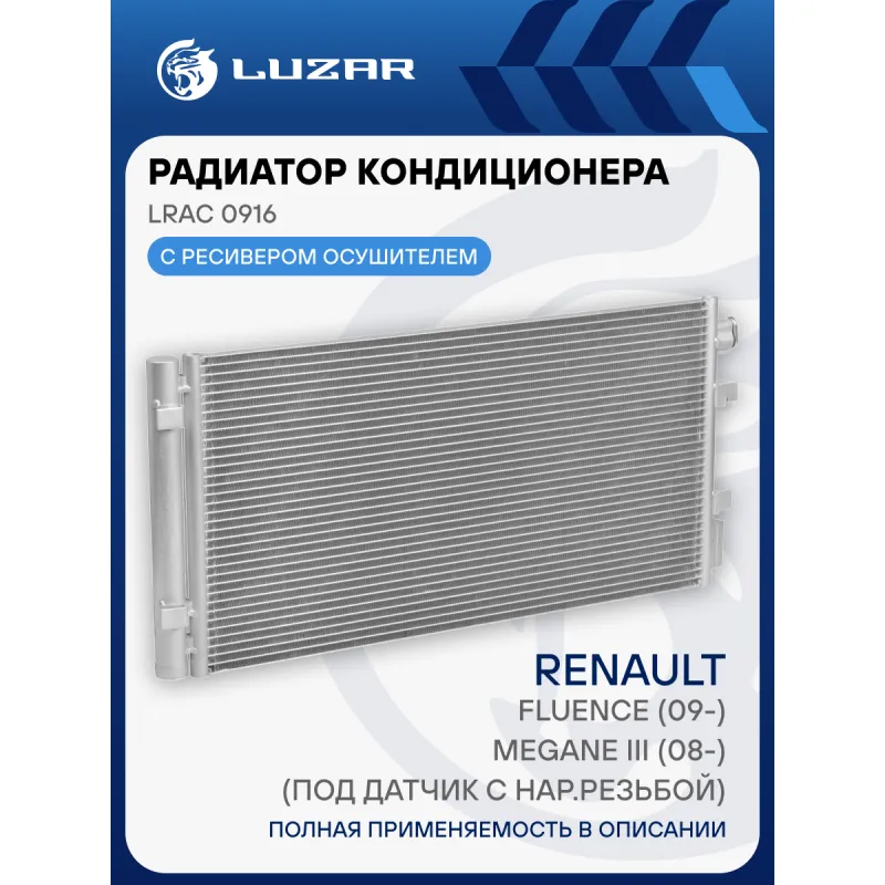 Радиатор кондиционера для автомобилей Fluence (09-)/Megane III (08-) (под датчик с нар.резьбой) Характеристики: Артикул: LRAC 0916 OEM номера: 92100-0294R, 92100-9956R, 921003293R Количество на автомобиль: 1 Длина сердцевины, мм: 668 Высота сердцевины, мм: 350 Толщина сердцевины, мм: 16 Сопутствующий товар: Радиаторы охлаждения: LRc 0902; LRc 0904; LRc 0914 Сопутствующий товар: Электровентиляторы охлаждения: LFK 0914 Сопутствующий товар: Компрессоры кондиционера: LCAC 0914; LCAC 0978 Сопутствующий товар: Клапаны расширительные кондиционера (ТРВ): LTRV 0914 Ресивер: + Подходит для авто: Renault Fluence (10-), Megane III (08-), Scenic III (09-), Megane III (08-) Для проверки применяемости отправьте VIN автомобиля через вкладку "Есть вопросы о товаре?" Комплектация: Паспорт изделия - 1 шт Радиатор кондиционера c ресивером - 1 шт Гарантия: от 1 года.