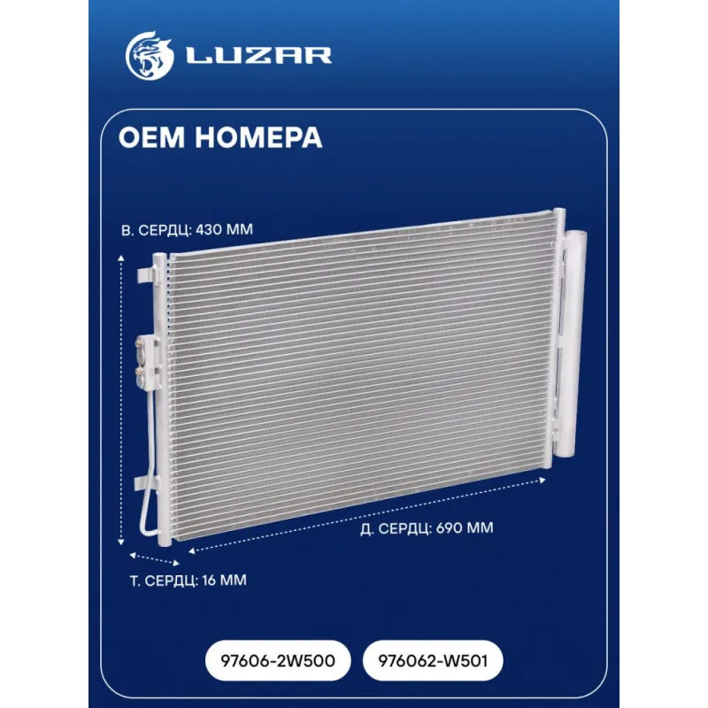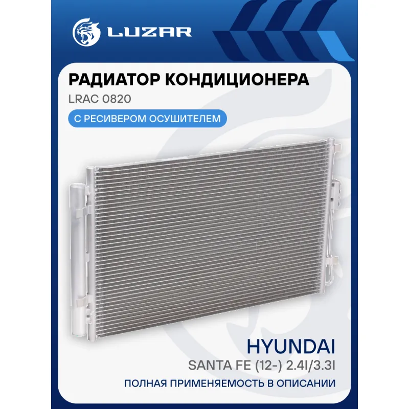 Радиатор кондиционера для автомобилей Santa Fe (12-) 2.4i/3.3i Характеристики: Артикул: LRAC 0820 OEM номера: 97606-2W500, 976062-W501 Количество на автомобиль: 1 Длина сердцевины, мм: 690 Высота сердцевины, мм: 430 Толщина сердцевины, мм: 16 Сопутствующий товар: Ресиверы-осушители: LCD 0801 Сопутствующий товар: Радиаторы охлаждения: LRc 08B2 Ресивер: + Подходит для авто: Hyundai Santa Fe III (12-), Santa Fe III (12-) Для проверки применяемости отправьте VIN автомобиля через вкладку "Есть вопросы о товаре?" Комплектация: Паспорт изделия - 1 шт Радиатор кондиционера c ресивером - 1 шт Гарантия: от 1 года.