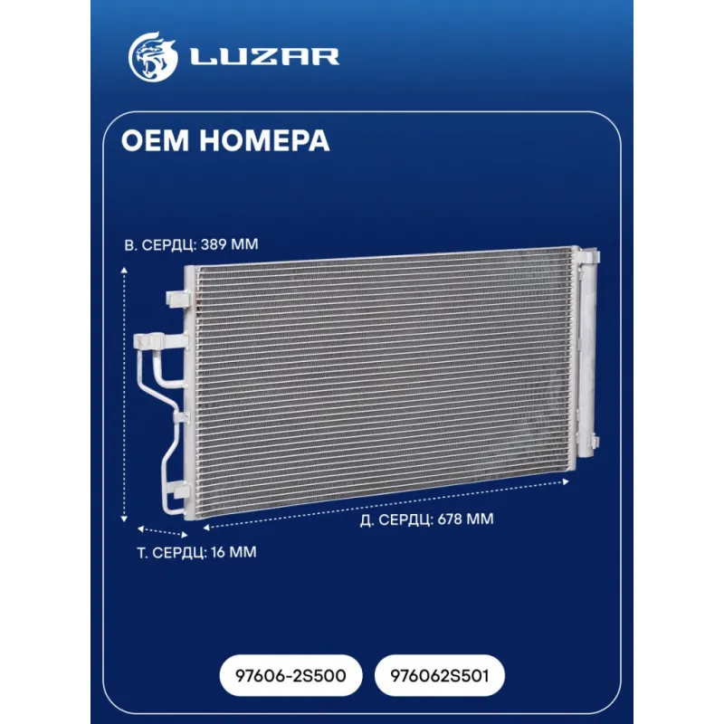 Радиатор кондиционера для автомобилей Sportage III/iX35 (10-) G (Корея) Характеристики: Артикул: LRAC 08Y5 OEM номера: 97606-2S500, 976062S501 Количество на автомобиль: 1 Длина сердцевины, мм: 678 Высота сердцевины, мм: 389 Толщина сердцевины, мм: 16 Сопутствующий товар: Ресиверы-осушители: LCD 0801 Сопутствующий товар: Радиатор... Читать полностью →