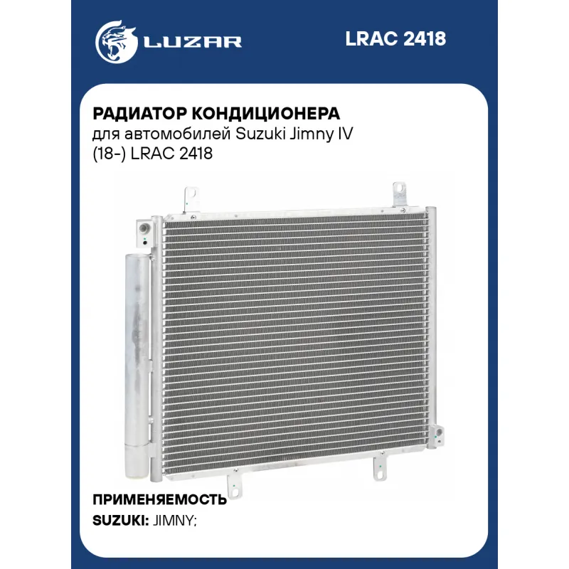 Радиатор кондиционера для автомобилей Suzuki Jimny IV (18-) Характеристики: Артикул: LRAC 2418 OEM номера: 9531077R00 Длина сердцевины, мм: 394 Толщина сердцевины, мм: 12 Высота сердцевины, мм: 373 Комплектующие конденсера: LCD 0801 Количество на автомобиль: 1 Ресивер: + Комплектация: Паспорт изделия - 1 шт Радиатор кондицион... Читать полностью →