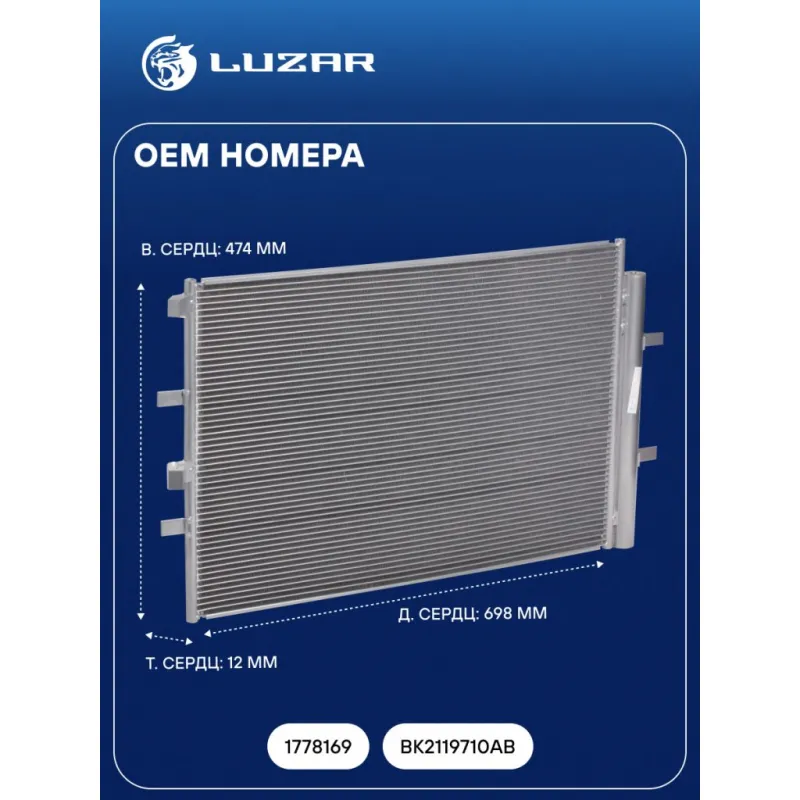 Радиатор кондиционера для автомобилей Transit (13-) 2.2 TDCI Характеристики: Артикул: LRAC 1087 OEM номера: 1778169, BK2119710AB Количество на автомобиль: 1 Длина сердцевины, мм: 698 Высота сердцевины, мм: 474 Толщина сердцевины, мм: 12 Сопутствующий товар: Радиаторы охлаждения: LRc 1087 Сопутствующий товар: Электровентиляторы охлаждения: LFK 1014 Ресивер: + Подходит для авто: Ford Transit IX (13-) Для проверки применяемости отправьте VIN автомобиля через вкладку "Есть вопросы о товаре?" Комплектация: Паспорт изделия - 1 шт Радиатор кондиционера c ресивером - 1 шт Гарантия: от 1 года.