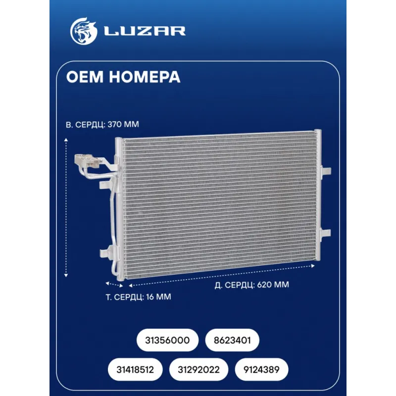 Радиатор кондиционера для автомобилей Volvo S40 (04-)/C30 1.6i (06-) Характеристики: Артикул: LRAC 1004 OEM номера: 31418512, 31292022, 9124389, 31356000, 8623401 Количество на автомобиль: 1 Длина сердцевины, мм: 620 Высота сердцевины, мм: 370 Толщина сердцевины, мм: 16 Ресивер: - Подходит для авто: Volvo C30 (06-), V50 (04-), S40 (04-), C30 (06-) Для проверки применяемости отправьте VIN автомобиля через вкладку "Есть вопросы о товаре?" Комплектация: Радиатор кондиционера Паспорт изделия - 1 шт Радиатор кондиционера c ресивером - 1 шт Гарантия: от 1 года.