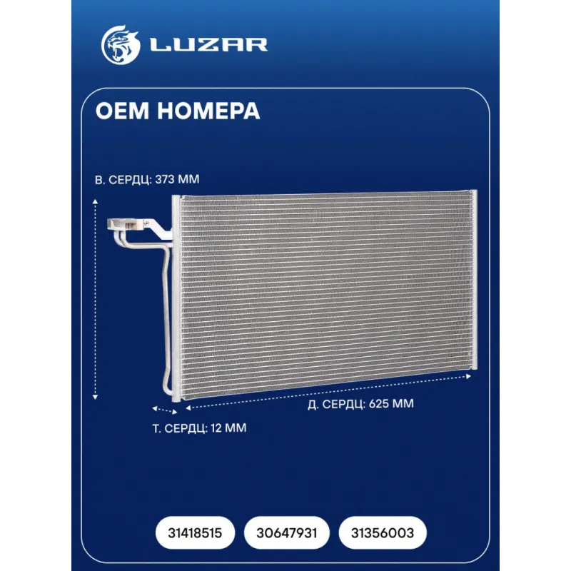 Радиатор кондиционера для автомобилей Volvo S40 (04-)/С30 (06-) 2.4i Характеристики: Артикул: LRAC 1005 OEM номера: 31418515, 30647931, 31356003 Количество на автомобиль: 1 Длина сердцевины, мм: 625 Высота сердцевины, мм: 373 Толщина сердцевины, мм: 12 осушитель: - Подходит для авто: Volvo S40 (04-), C30 (06-) Для проверки применяемости отправьте VIN автомобиля через вкладку "Есть вопросы о товаре?" Комплектация: Радиатор кондиционера Паспорт изделия - 1 шт Радиатор кондиционера c ресивером - 1 шт Гарантия: от 1 года.